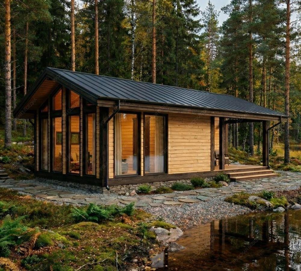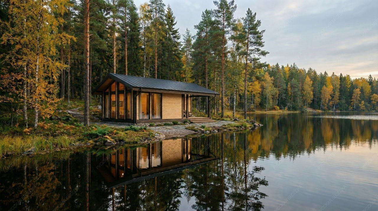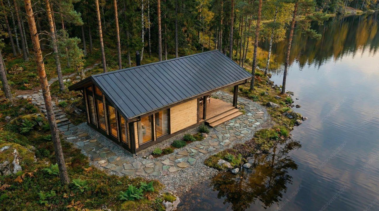 Решение ориентировано на создание комфортного пространства для семейного отдыха, где каждая зона имеет четкое назначение, а панорамное остекление объединяет интерьер с природным окружением.
