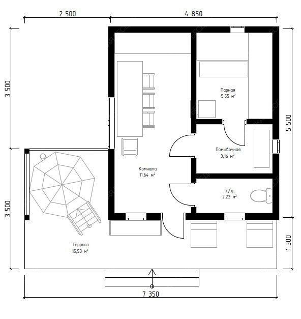Конструкция изготовлена из хвойных пород древесины (ель, сосна)