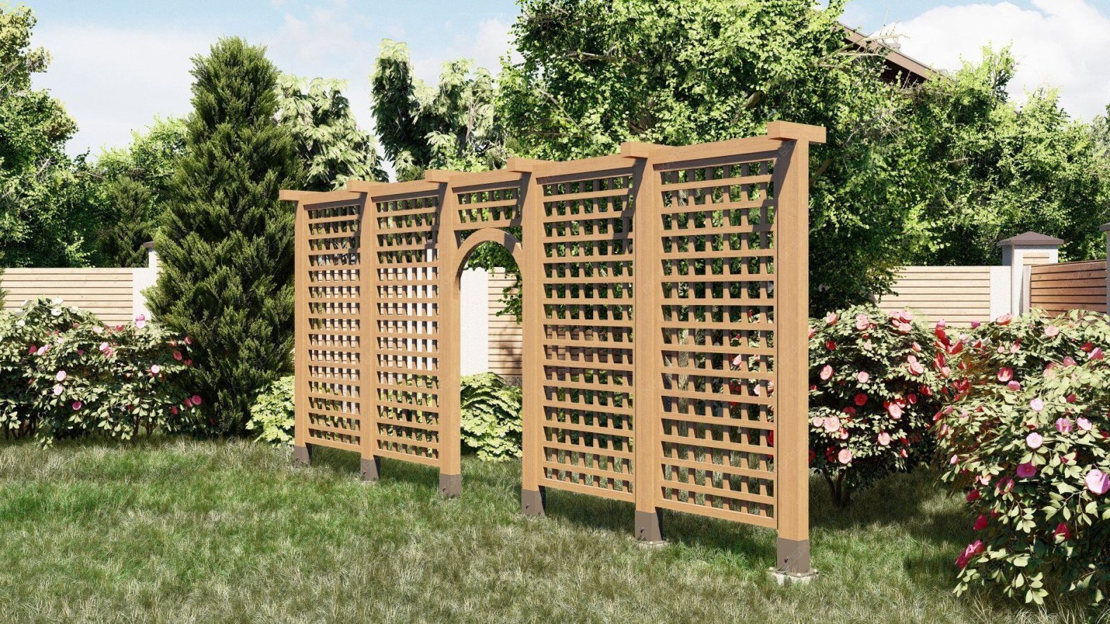 Перголы, шпалеры и арки — это прекрасные элементы ландшафтного дизайна, которые добавляют изысканность и стиль вашему участку. Эти деревянные конструкции не только эстетически привлекательны, но и функциональны, создавая уютные уголки для отдыха и наслаждения природой. Перголы помогают создать тень и защиту от солнца, прекрасно подойдут для обустройства зон для отдыха или столовых на свежем воздухе. Они отлично смотрятся, когда обвиты зелеными растениями, создавая живописные уголки в вашем саду. Шпалеры служат отличной поддержкой для вьющихся растений, позволяя им расти вверх и заполнять пространство зеленью. Это не только украшает ваш участок, но и помогает организовать вертикальное озеленение, что особенно полезно в условиях ограниченного пространства. Арки добавляют романтичности и шарма, становясь эффектным акцентом в вашем саду. Они могут служить входом в сад или создавать красивые проходы между различными зонами, придавая участку больше структуры и организованности. Все наши конструкции изготавливаются из качественного дерева, что гарантирует долговечность и надежность. Мы используем только отборные породы древесины, которые обрабатываются специальными пропитками для защиты от вредителей и атмосферных воздействий.