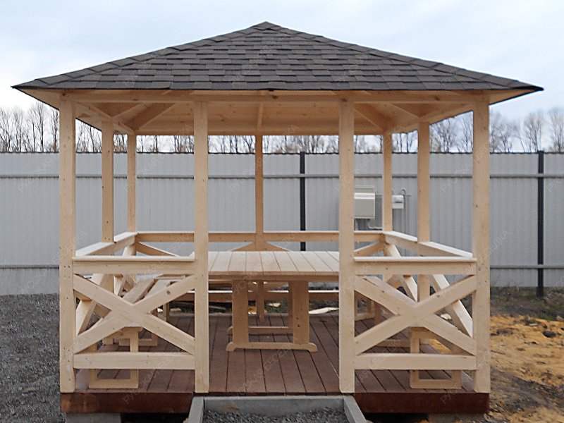 Беседка выполненная из лучших пород древесины, прослужит долгие годы и не потребует особого ухода и обслуживания. Специальные лакокрасочные материалы которые мы используем, предотвратят старение, гниение и заражение грибком конструкции кухни. Используемая огнебиозащита образует полупрозрачное полуматовое покрытие, стойкое к влаге, УФ-излучению, перепадам температуры и другим атмосферным воздействиям.