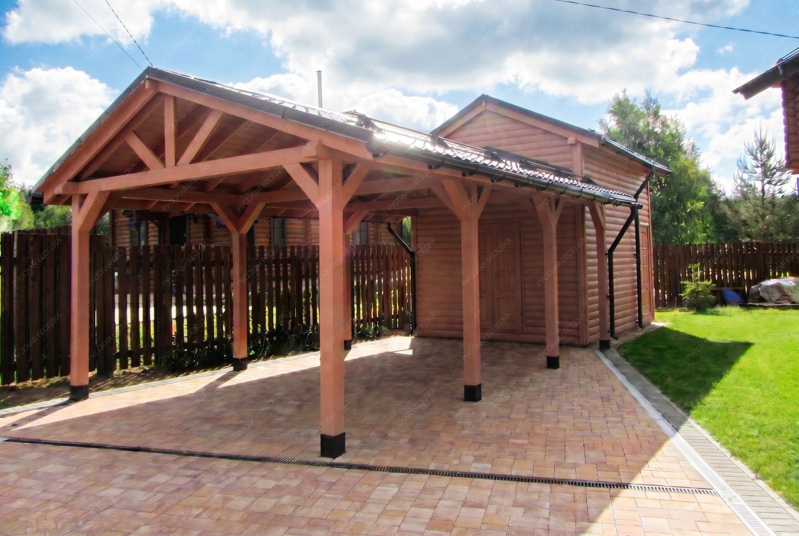Навес из дерева послужит отличным парковочным местом для одного или нескольких автомобилей.