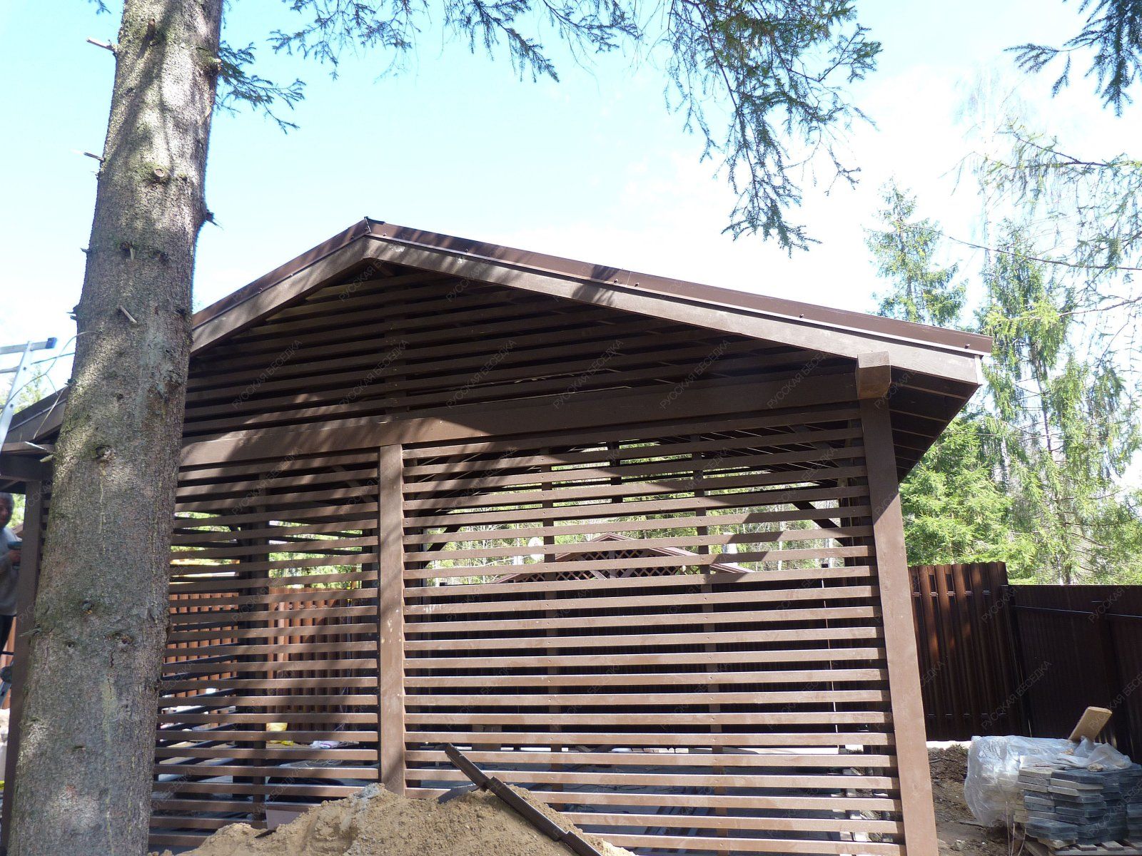 Навес из дерева послужит отличным парковочным местом для одного или нескольких автомобилей.