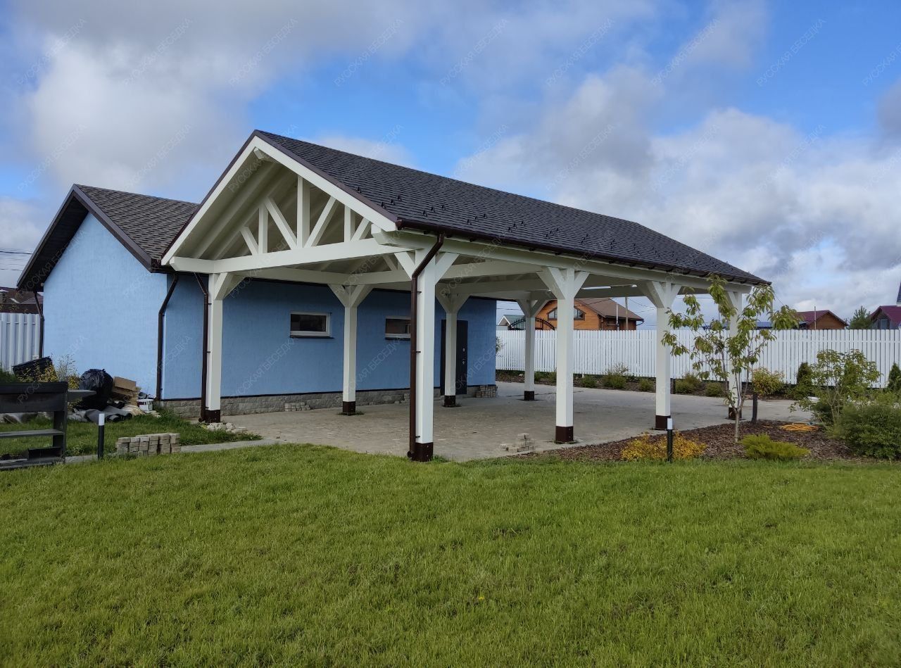 Навес из дерева послужит отличным парковочным местом для одного или нескольких автомобилей.