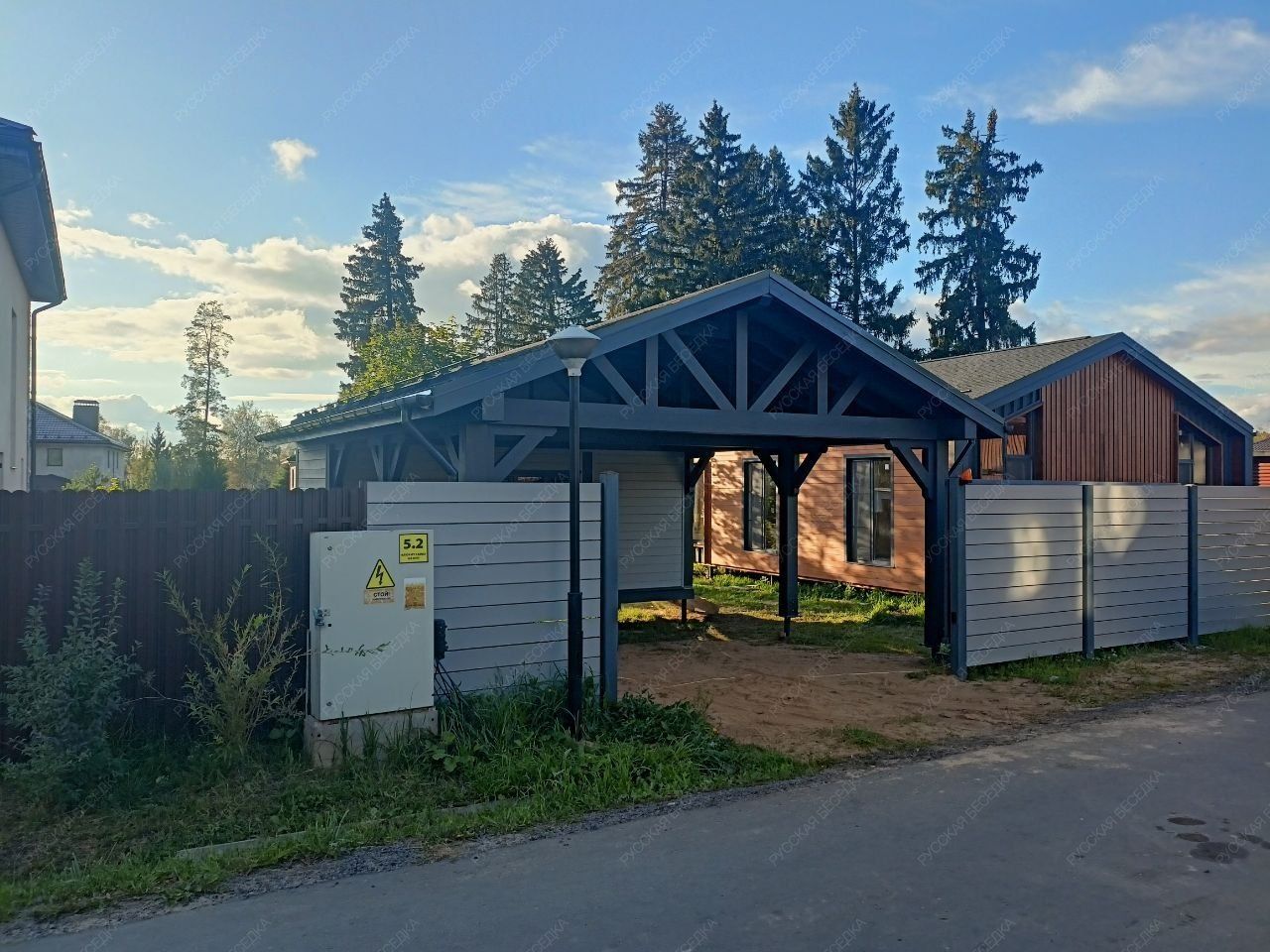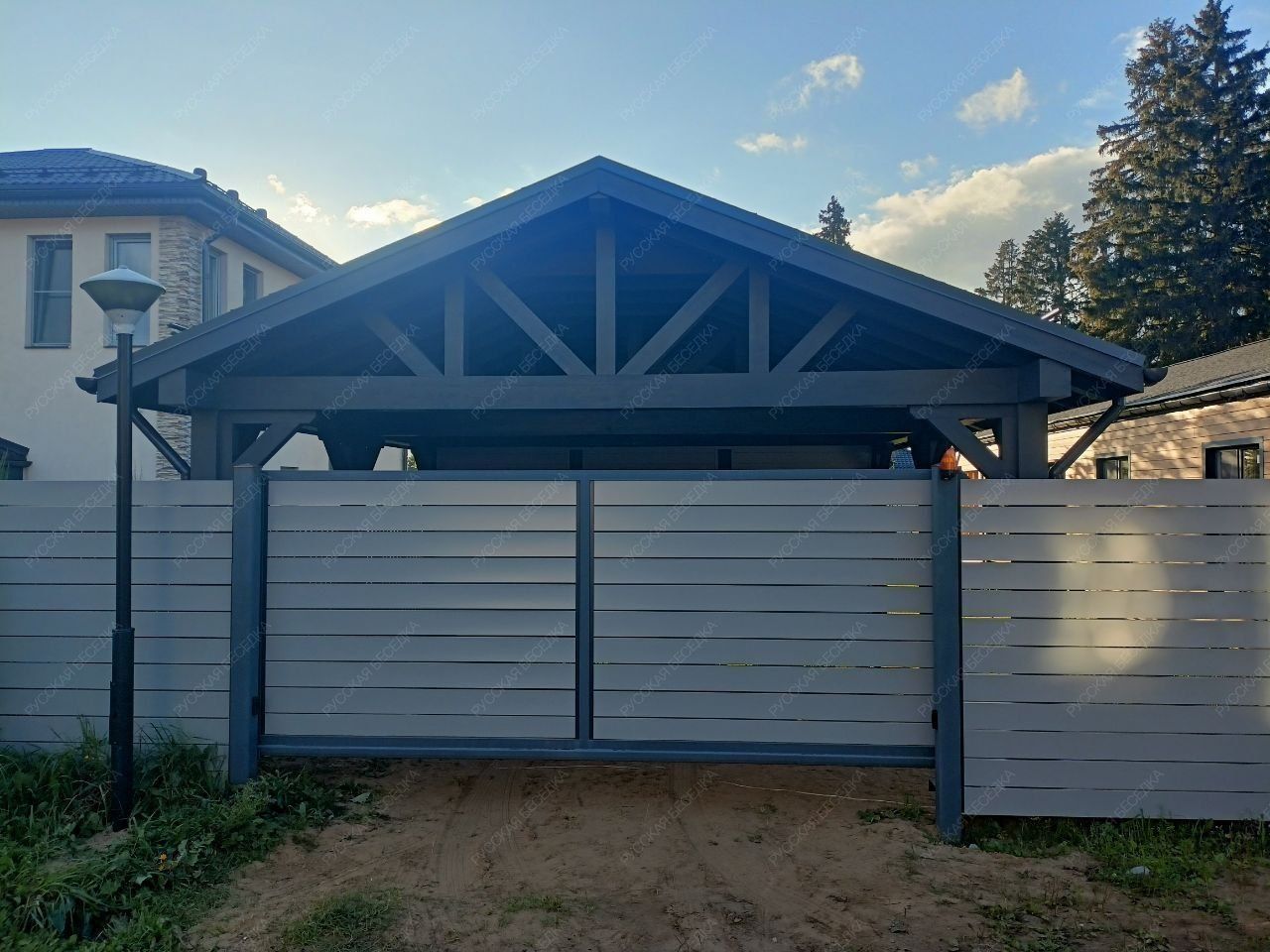 Навес из дерева послужит отличным парковочным местом для одного или нескольких автомобилей.