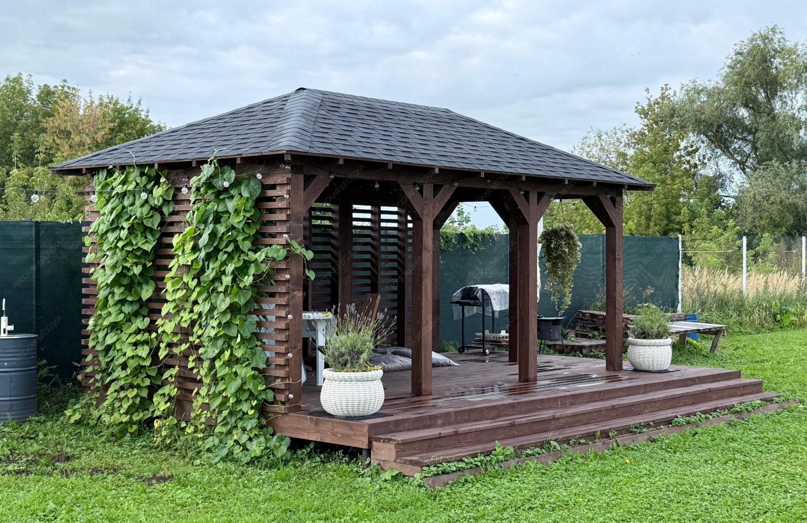 Современный ландшафтный дизайн и беседки - центральные элементы загородного участка. Беседка должна размещаться в таком месте участка, где вам будет комфортно находиться, а также она должна отвечать своему назначению и притягивать взгляды. Беседка является уникальным строением, с ее помощью можно отдохнуть за чашечкой кофе, укрыться от знойного солнца или провести шумный праздник в кругу семьи и друзей.