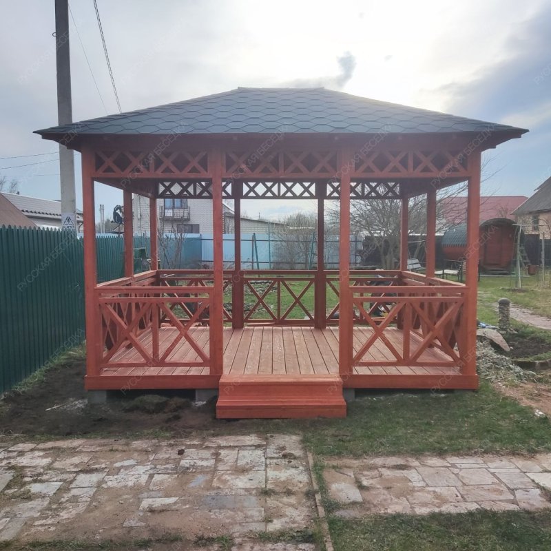 Беседка выполненная из лучших пород древесины, прослужит долгие годы и не потребует особого ухода и обслуживания. Специальные лакокрасочные материалы которые мы используем, предотвратят старение, гниение и заражение грибком конструкции кухни. Используемая огнебиозащита образует полупрозрачное полуматовое покрытие, стойкое к влаге, УФ-излучению, перепадам температуры и другим атмосферным воздействиям.