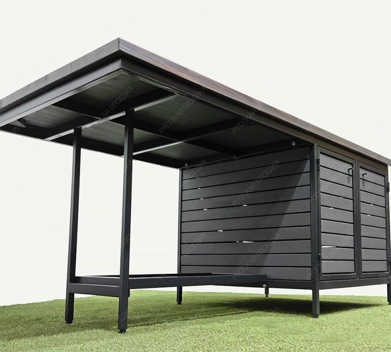 Это универсальная композиция. Столешница выполняет роль разделочного пространства и кухонного стола. Кухня включает в себя глубокий стеллаж, для кухонной утвари и элегантную мойку fabia profi 800×500мм. Практичный, стильный, компактный и удобный комплект уличной кухни.