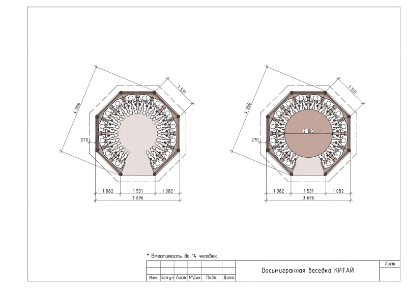 - Форма беседки: восьмигранная