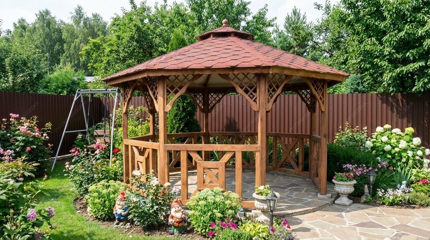Современный ландшафтный дизайн и беседки - центральные элементы загородного участка. Беседка должна размещаться в таком месте участка, где вам будет комфортно находиться, а также она должна отвечать своему назначению и притягивать взгляды. Беседка является уникальным строением, с ее помощью можно отдохнуть за чашечкой кофе, укрыться от знойного солнца или провести шумный праздник в кругу семьи и друзей.