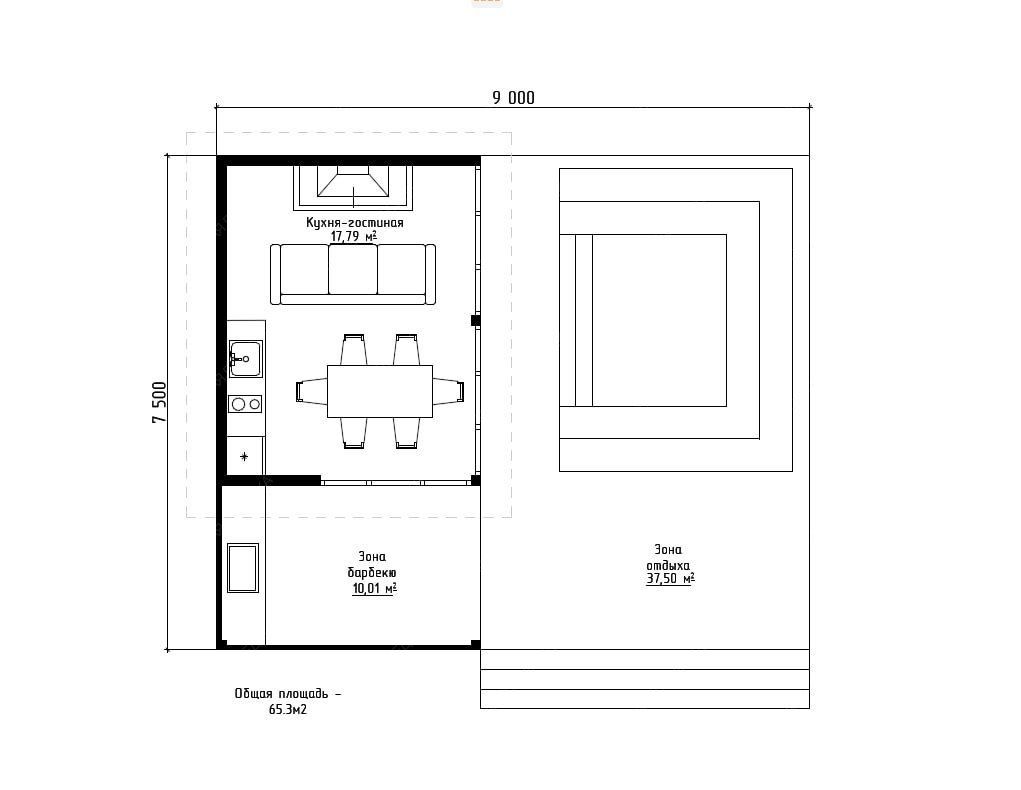 • Размер: 9 х 7,5 м